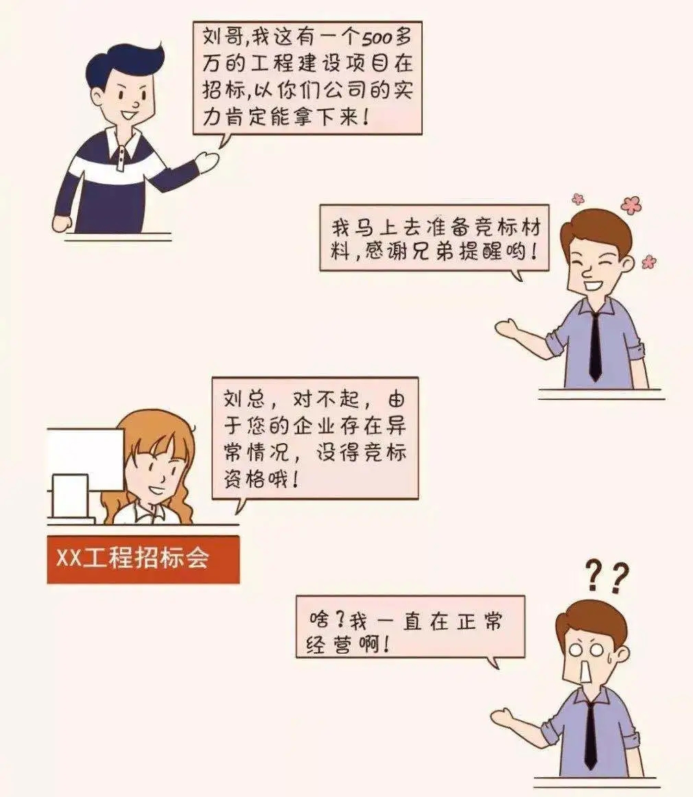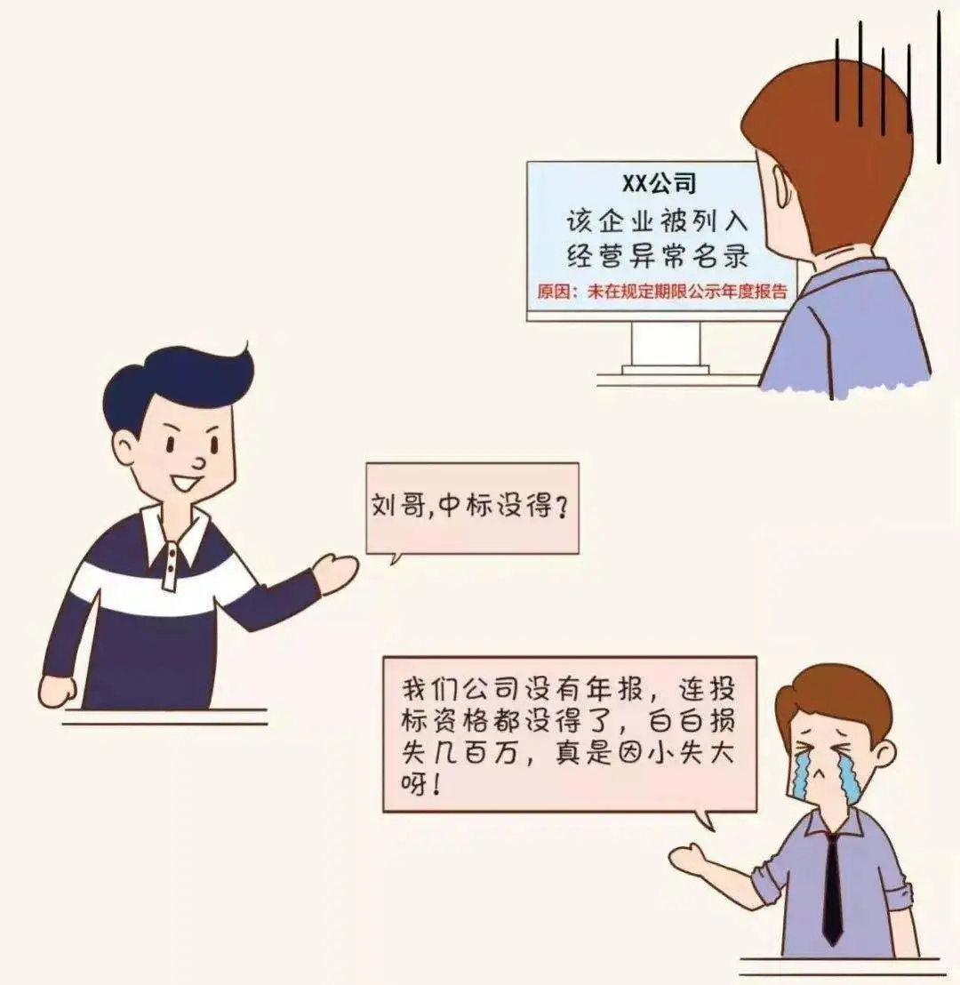 僅剩 7天 02企業(yè)合作信用受疑 現(xiàn)在是信用社會,信用對于人和企業(yè)來說都至關(guān)重要,大家都喜歡和有信用的人交往、合作。 被列入經(jīng)營異常名錄,你看看誰還找你合作! 03經(jīng)營活動(dòng)受限 經(jīng)營異常名錄信息現(xiàn)在也是 銀行等金融機(jī)構(gòu)貸款、擔(dān)保等金融活動(dòng)的 參考依據(jù) 老板 你好,我去年年報(bào)忘記報(bào),現(xiàn)在被列入經(jīng)營異常名錄,本來想著在阿里巴巴注冊一個(gè)網(wǎng)店,在網(wǎng)上做點(diǎn)小生意,結(jié)果被告知因?yàn)槠髽I(yè)是經(jīng)營異常名錄,注冊不了,這可怎么辦呀! 你好,首先應(yīng)在國家企業(yè)信用信息公示系統(tǒng)補(bǔ)報(bào)年報(bào),然后再準(zhǔn)備好相關(guān)材料去當(dāng)?shù)厥袌霰O(jiān)管部門申請移出哦。 小編 老板 好的,萬萬沒想到?jīng)]報(bào)年報(bào)的后果竟然這么嚴(yán)重,嚴(yán)重影響了我的經(jīng)營活動(dòng),我真是后悔莫及。 是的,企業(yè)被列入經(jīng)營異常名錄,那就有了信用污點(diǎn),必須高度重視哦!對了,2019年度的年報(bào)馬上也要截止啦,請及時(shí)申報(bào)哦。 小編 老板 2019年度的年報(bào)我們公司馬上準(zhǔn)備申報(bào)了,經(jīng)過這次,以后一定不會忘了及時(shí)年報(bào)! 建議您盡早進(jìn)行年報(bào),避免因月底網(wǎng)站擁堵或企業(yè)自身數(shù)據(jù)方面準(zhǔn)備不充分造成年報(bào)延遲。 小編 04列入嚴(yán)重違法企業(yè)名單 最最最嚴(yán)重的后果來啦! 列入經(jīng)營異常名錄三年還沒有履行信息公示義務(wù)的企業(yè),將被列入嚴(yán)重違法失信企業(yè)名單 企業(yè)五年內(nèi)不能申請移出嚴(yán)重違法失信名單,法定代表人、負(fù)責(zé)人也將受到牽連,三年內(nèi)不得擔(dān)任其他企業(yè)的法定代表人、負(fù)責(zé)人! 企業(yè)一站式服務(wù)平臺 工商注冊、財(cái)稅代賬、審計(jì)評估、稅務(wù)籌劃、商標(biāo)專利、資質(zhì)審批、人才獵頭、人才報(bào)名、金融保險(xiǎn)、信用評級、法務(wù)咨詢、項(xiàng)目申報(bào) 公司網(wǎng)站:woodplate.cn 聯(lián)系方式:400-0551-976 合肥總部:安徽省合肥市南一環(huán)與馬鞍山路交口恒興廣場A座24樓 分部:合肥市行政服務(wù)中心一樓“萬業(yè)公司代理窗口”(工商局窗口正對面) 分部:合肥市瑤海區(qū)行政服務(wù)中心一樓“萬業(yè)公司代理窗口”(工商局窗口正對面)