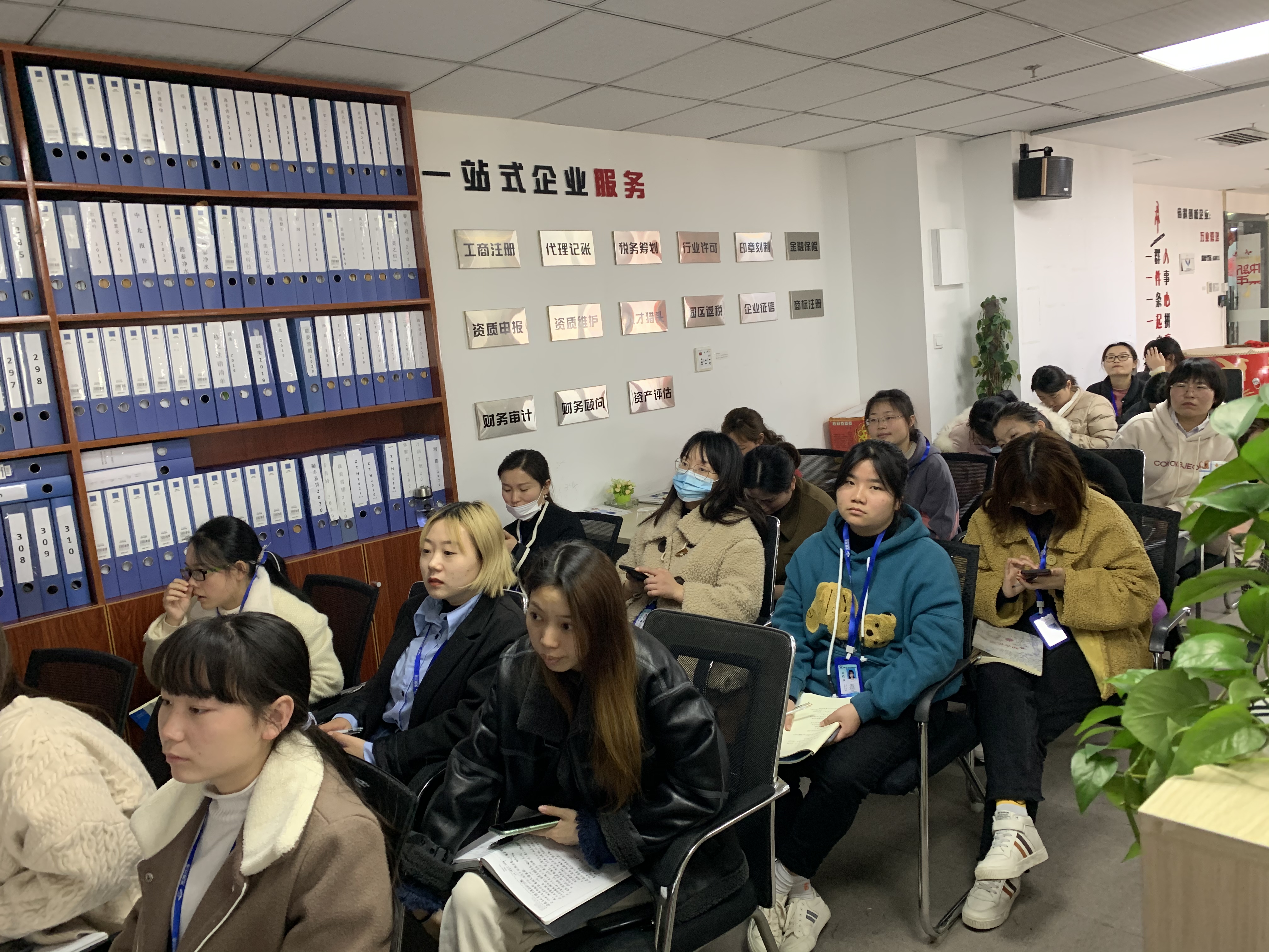 緊接著,下午,安徽萬業(yè)中天衡——王所、會計部——許主管為大家講解了“稅籌產(chǎn)品、稅籌服務(wù)、財務(wù)知識”“購買社保流程”,全員積極參與,用心傾聽。