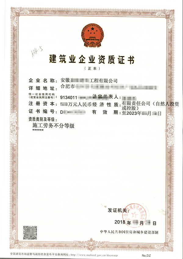 名稱:建筑企業(yè)資質(zhì)證書