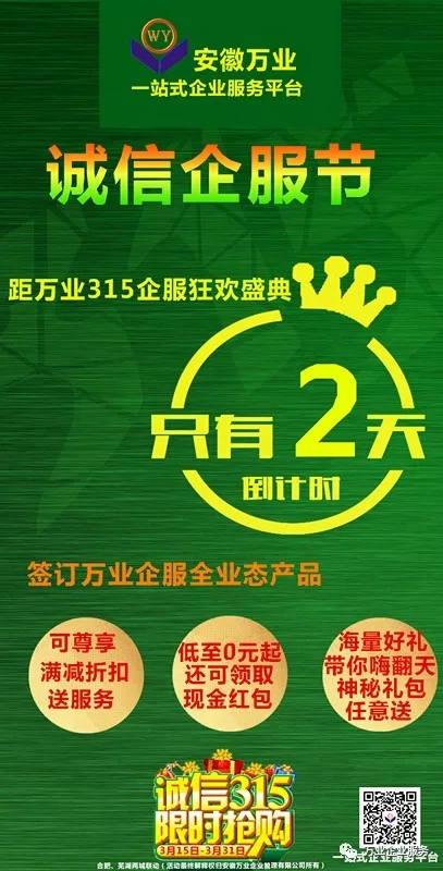 現(xiàn)為了響應(yīng)315誠(chéng)信服務(wù)消費(fèi)者的號(hào)召,安徽萬業(yè)特推出315企服節(jié)盛典活動(dòng)。