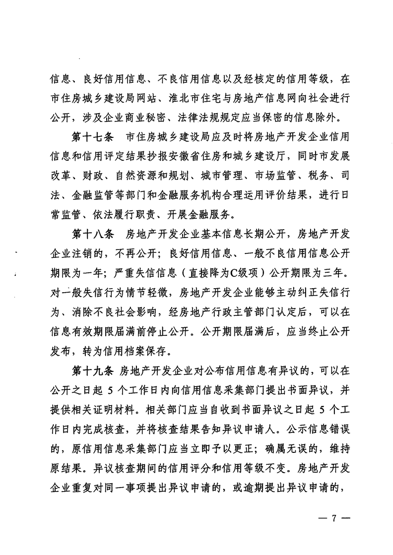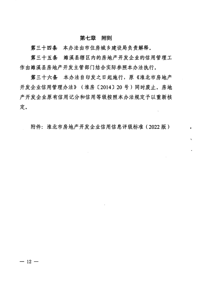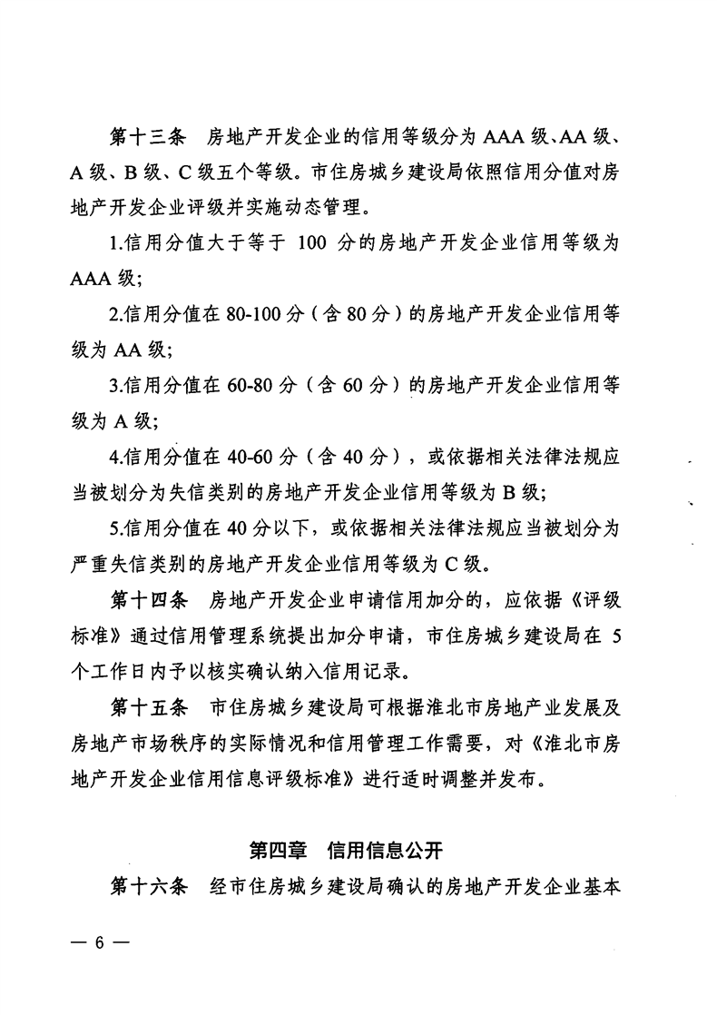 重磅消息!淮北市住房和城鄉(xiāng)建設(shè)局官網(wǎng)昨日發(fā)布關(guān)于印發(fā)《淮北市房地產(chǎn)開(kāi)發(fā)企業(yè)信用管理辦法》的通知(淮住建規(guī)【2022】1號(hào))文件,擬對(duì)開(kāi)發(fā)商信用進(jìn)行評(píng)級(jí),并根據(jù)開(kāi)發(fā)企業(yè)信用不同等級(jí)實(shí)施差異化管理,為規(guī)范房地產(chǎn)開(kāi)發(fā)經(jīng)營(yíng)行為,促進(jìn)房地產(chǎn)業(yè)持續(xù)健康穩(wěn)定發(fā)展提供政策指引。具體內(nèi)容如下: