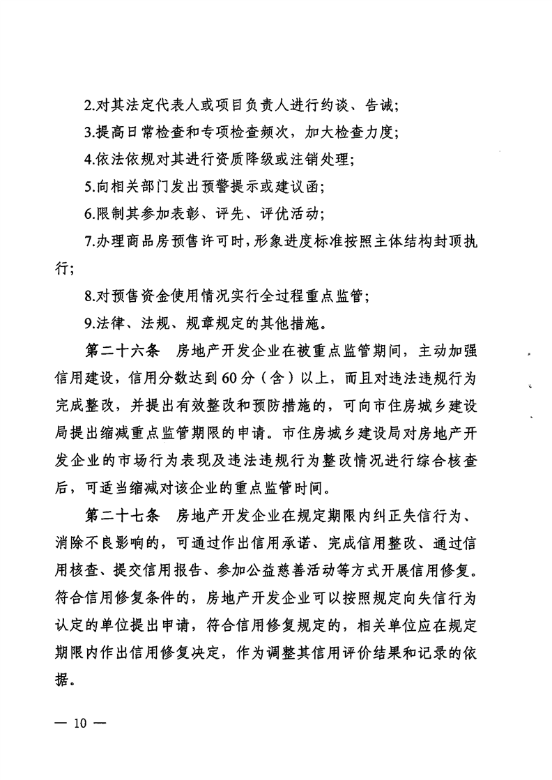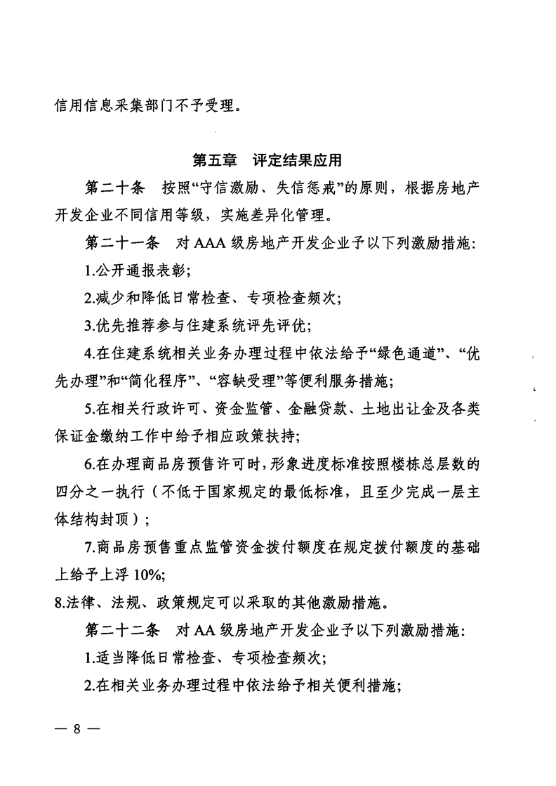 為繼續(xù)推進(jìn)行業(yè)信用體系建設(shè),房地產(chǎn)開(kāi)發(fā)相關(guān)部門(mén)宜進(jìn)一步深化信用管理,積極探索開(kāi)發(fā)企業(yè)信用評(píng)價(jià)結(jié)果的使用,引導(dǎo)開(kāi)發(fā)企業(yè)積極創(chuàng)優(yōu),提高房地產(chǎn)開(kāi)發(fā)企業(yè)誠(chéng)信經(jīng)營(yíng)意識(shí),鼓勵(lì)開(kāi)發(fā)企業(yè)走責(zé)任地產(chǎn)、品質(zhì)地產(chǎn)之路,為社會(huì)提供更好的產(chǎn)品和服務(wù)。