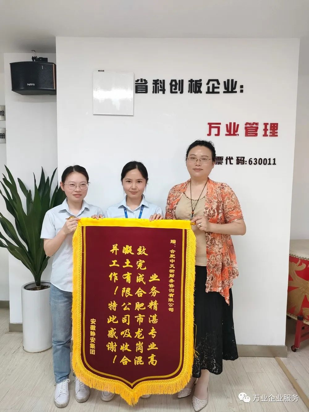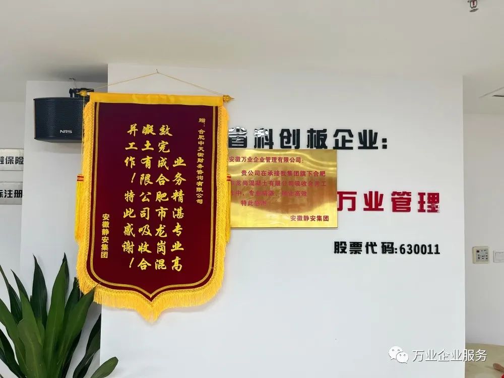 5月26日,安徽靜安集團為安徽萬業(yè)·中天衡送來一面錦旗和一塊牌匾。其集團代表負責人說:“真是太感謝了,要不是萬業(yè)中天衡的鼎力幫助,高效的完成了合肥市龍崗混凝土有限公司吸收合并工作,我們的業(yè)務(wù)也不會開展的如此順利!”
