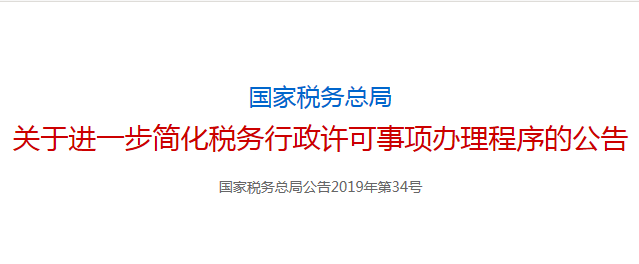 稅務(wù)總局發(fā)文進(jìn)一步簡化稅務(wù)行政許可事項(xiàng)辦理程序,12月1日起施行(2019-10-23)
