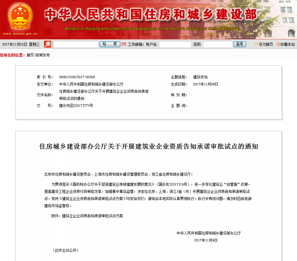 按照國(guó)辦發(fā)[2017]19號(hào)文件部署,準(zhǔn)確把握建筑業(yè)“放管服”改革方向,不斷創(chuàng)新和改進(jìn)政府對(duì)建筑市場(chǎng)的監(jiān)管機(jī)制,圍繞“減少審批環(huán)節(jié)、提高審批效能、服務(wù)企業(yè)發(fā)展”的總體思路,探索建立“誠(chéng)信規(guī)范、審批高效、監(jiān)管完善”的告知承諾資質(zhì)審批新模式,推動(dòng)資質(zhì)管理向“寬準(zhǔn)入、嚴(yán)監(jiān)管、強(qiáng)服務(wù)”轉(zhuǎn)變,激發(fā)建設(shè)工程企業(yè)發(fā)展活力,完善建筑市場(chǎng)信用體系,助推建筑業(yè)更好更快發(fā)展。