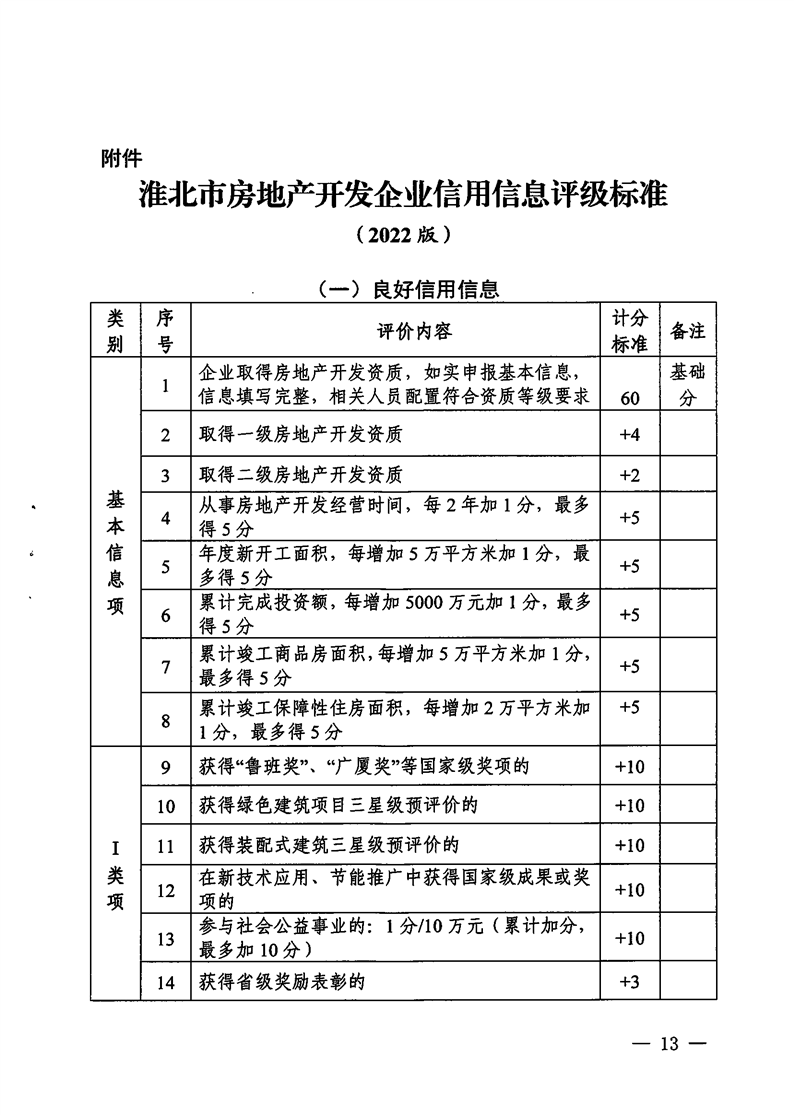 重磅消息!淮北市住房和城鄉(xiāng)建設(shè)局官網(wǎng)昨日發(fā)布關(guān)于印發(fā)《淮北市房地產(chǎn)開(kāi)發(fā)企業(yè)信用管理辦法》的通知(淮住建規(guī)【2022】1號(hào))文件,擬對(duì)開(kāi)發(fā)商信用進(jìn)行評(píng)級(jí),并根據(jù)開(kāi)發(fā)企業(yè)信用不同等級(jí)實(shí)施差異化管理,為規(guī)范房地產(chǎn)開(kāi)發(fā)經(jīng)營(yíng)行為,促進(jìn)房地產(chǎn)業(yè)持續(xù)健康穩(wěn)定發(fā)展提供政策指引。具體內(nèi)容如下: