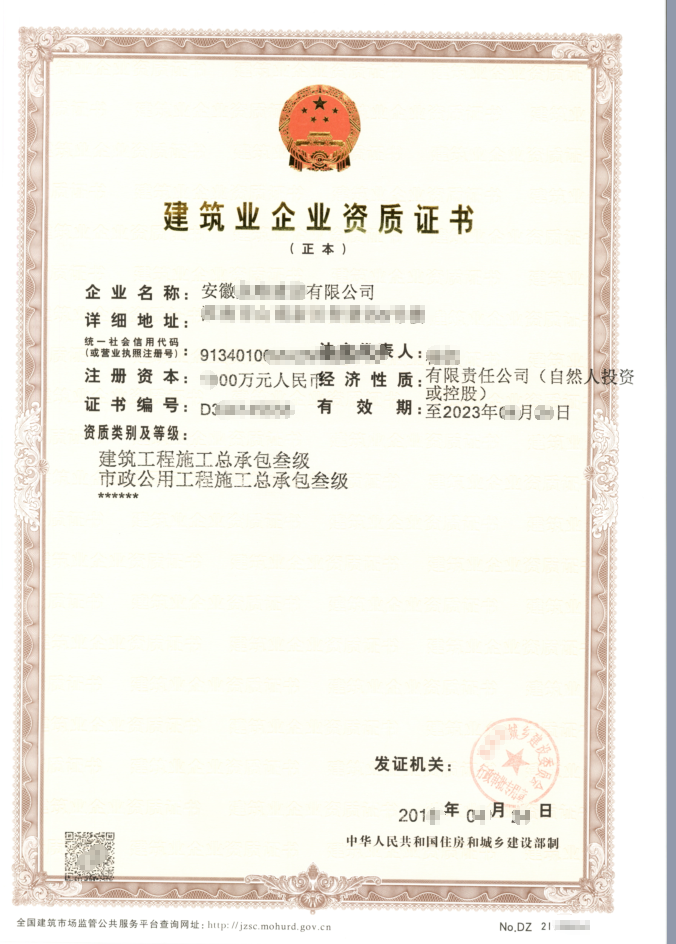 級(jí)別:建筑工程總包三級(jí)+市政三級(jí)
